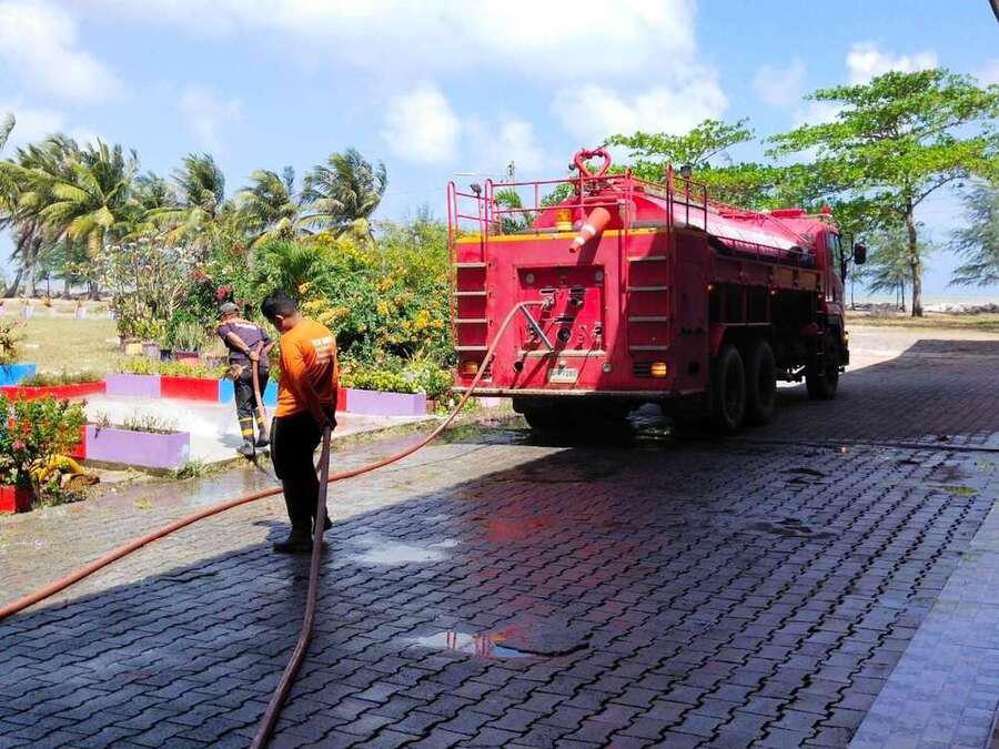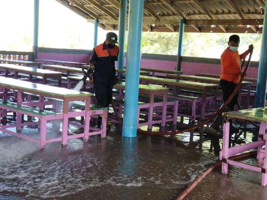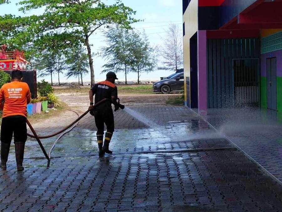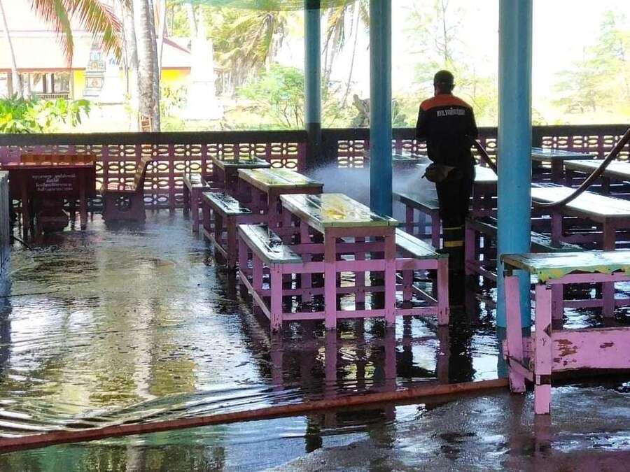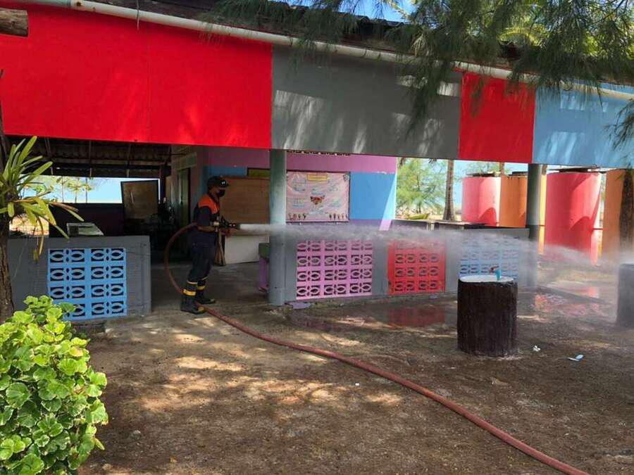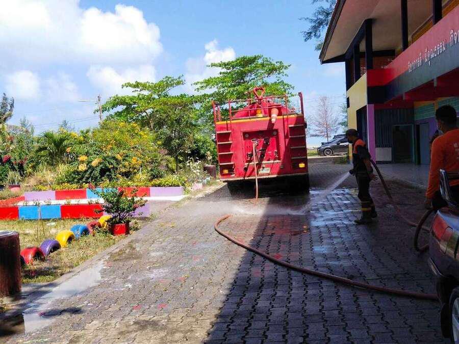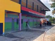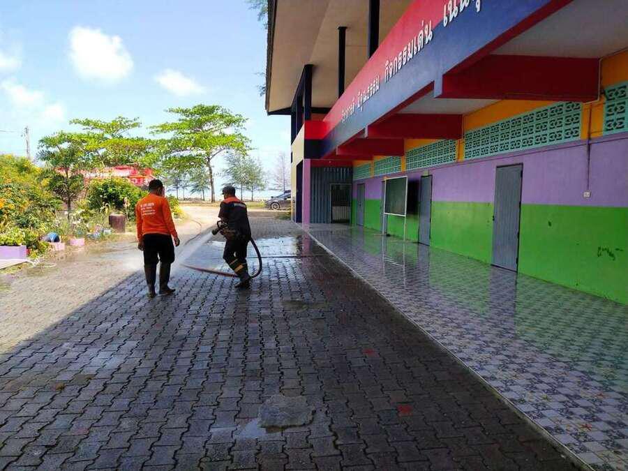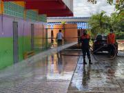 ทำความสะอาดบริเวณอาคารสถานที่เพื่อเตรียมเปิดเรียน On Site