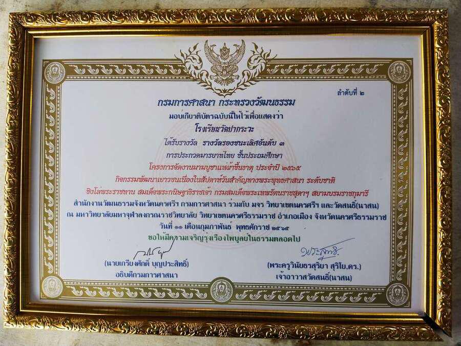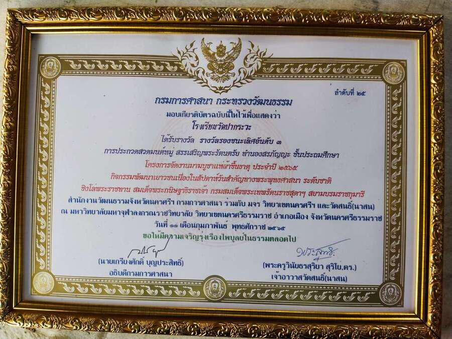 โรงเรียนวัดปากระวะ เข้าร่วมกิจกรรมพัฒนาเยาวชนเนื่องในสัปดาห์วันสำคัญทางพระพุทธศาสนา ระดับชาติ ชิงโล่พระราชทาน สมเด็จพระกนิษฐาธิราชเจ้า กรมสมเด็จพระเทพรัตนราชสุดาฯ สยามบรมราชกุมารี ณ มหาวิทยาลัยมหาจุฬาลงกรณราชวิทยาลัย วิทยาเขตนครศรีธรรมราช โดยเข้าแข่งขัน 2 รายการ คือการประกวดมารยาทไทย และการสวดมนต์หมู่ สรรเสริญพระรัตนตรัย ทำนองสรภัญญะ ในวันที่ 11 กุมภาพันธ์ 2565 ได้รับรางวัลรองชนะเลิศอันดับ3 ทั้ง 2 รายการ #ส่งเสริมการเรียนรู้ของผู้เรียนในทุกๆด้าน #โรงเรียนวัดปากระวะ #โรงเรียนของชุมชน S:0