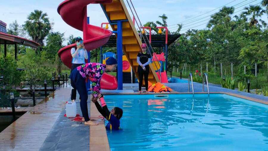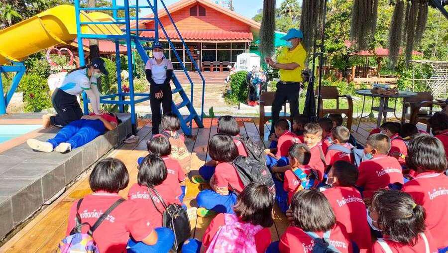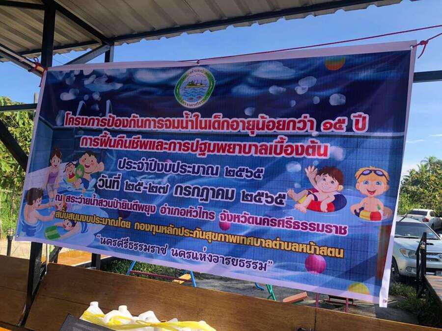 โครงการป้องกันการจมน้ำในเด็กอายุน้อยกว่า 15 ปี การฟื้นคืนชีพและการปฐมพยาบาลเบื้องต้น ประจำปีงบประมาณ 2565 วันที่ 26 กรกฎาคม 2565 ณ สระว่ายน้ำสวนป่ายินดีพยุง อำเภอหัวไทร จังหวัดนครศรีธรรมราช S:0