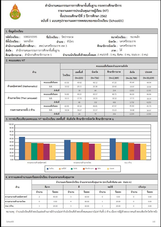 ขอแสดงความยินดีกับเด็กๆ ระดับชั้น ป.3 ปีการศึกษา 2562 สำหรับผลคะแนน NT สูงกว่าระดับประเทศ