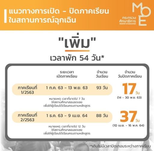 สำนักงานคณะกรรมการการศึกษาขั้นพื้นฐาน (สพฐ.) กำหนดเวลาเรียน ปีการศึกษา 2563