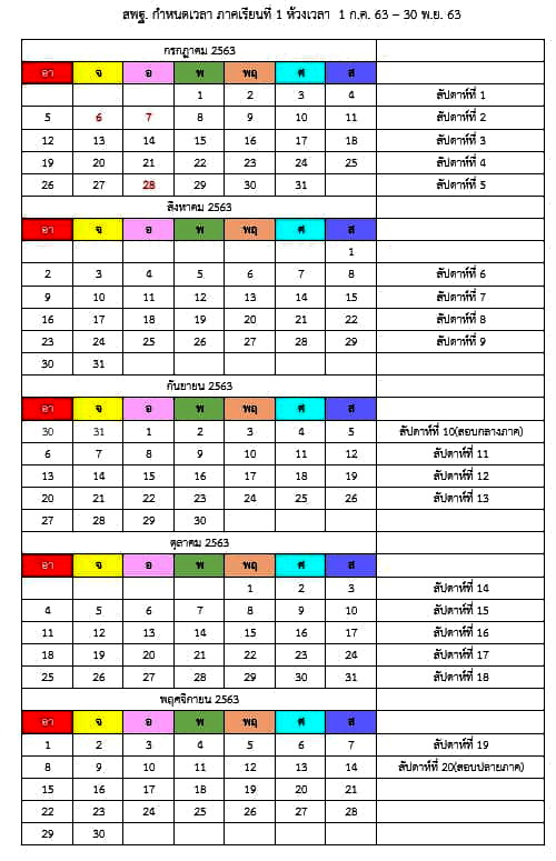 #ภาคเรียนที่1 ห้วงเวลา 1 กรกฎาคม - 30 พฤศจิกายน 2563 รวม 20 สัปดาห์