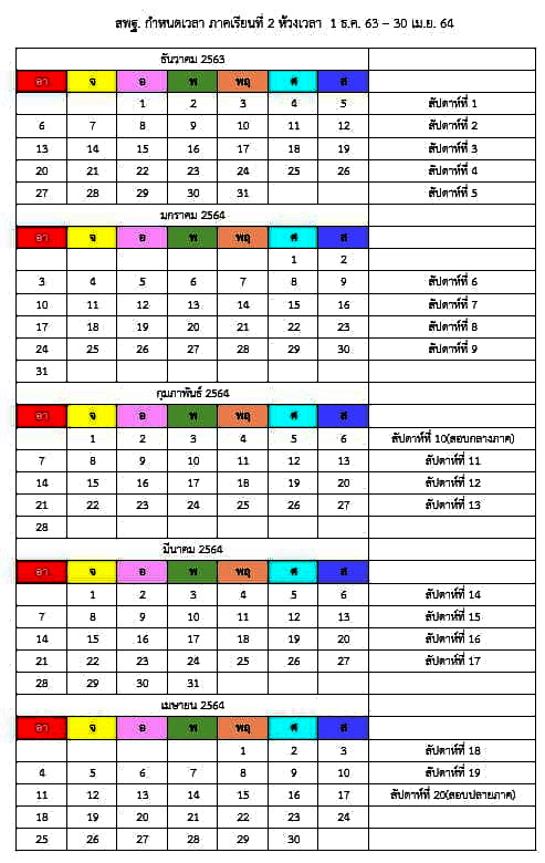 #ภาคเรียนที่2 ห้วงเวลา 1 ธันวาคม 2563 - 30 เมษายน 2564 รวม 20 สัปดาห์